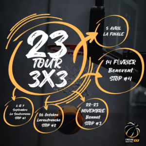 STOP #2 du 23 Tour – Championnat 3×3 en Creuse Vendredi 01 novembre 2024 Gymnase de BourganeufLe 3×3 revient en force pour la deuxième étape