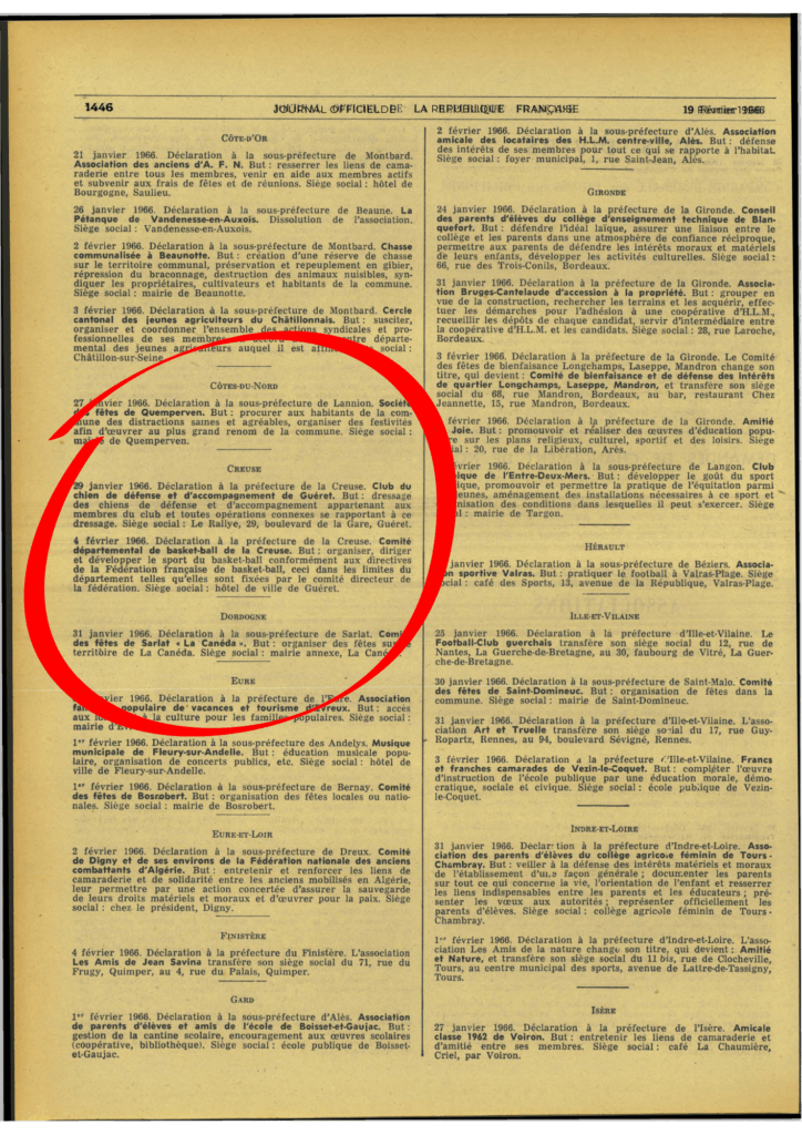 Le 4 février 1966 naissait le comité départemental de basket de la Creuse.